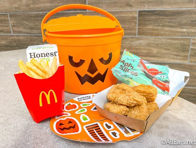 The McDONALD’S HALLOWEEN BUCKET by McDonald’s had a Happy Meal inside it. It included –